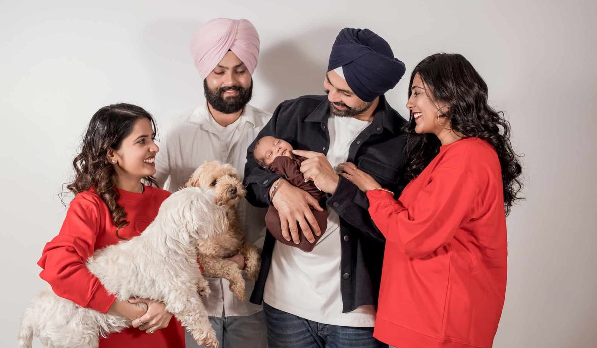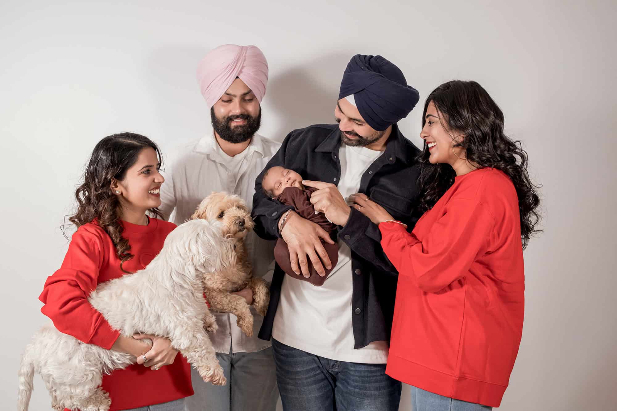 All of our sessions include family photos. I always encourage them but it is your choice whether to capture them as well. We can accommodate up to 6 people in total in our studio, including your immediate family, for the duration of your session.
